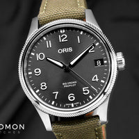 Matched with an olive textile strap to accentuate the classic vintage aviation, it is a fitting match for the Oris Big Crown Propilot Big Date.