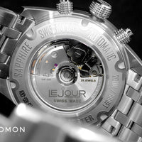 Der Roadster Chronograph Black Ref. LJ-RD-001 wird vom zuverlässigen Schweizer Automatik-Chronographenwerk Selita SW500 angetrieben. Dieses renommierte Uhrwerk ist vielen Chronographenliebhabern nicht fremd, denn es ist ein bewährtes Uhrwerk mit 25 Steinen, die mit 28.800 Schlägen pro Stunde schlagen. Dank des verschraubten Sichtgehäusebodens weist die Uhr eine überraschende Wasserdichtigkeit von 20 ATM (200 Meter) auf (für einen mechanischen Chronographen) und bietet damit ausreichend Schutz vor versehentlichen Wasserspritzern und mehr.